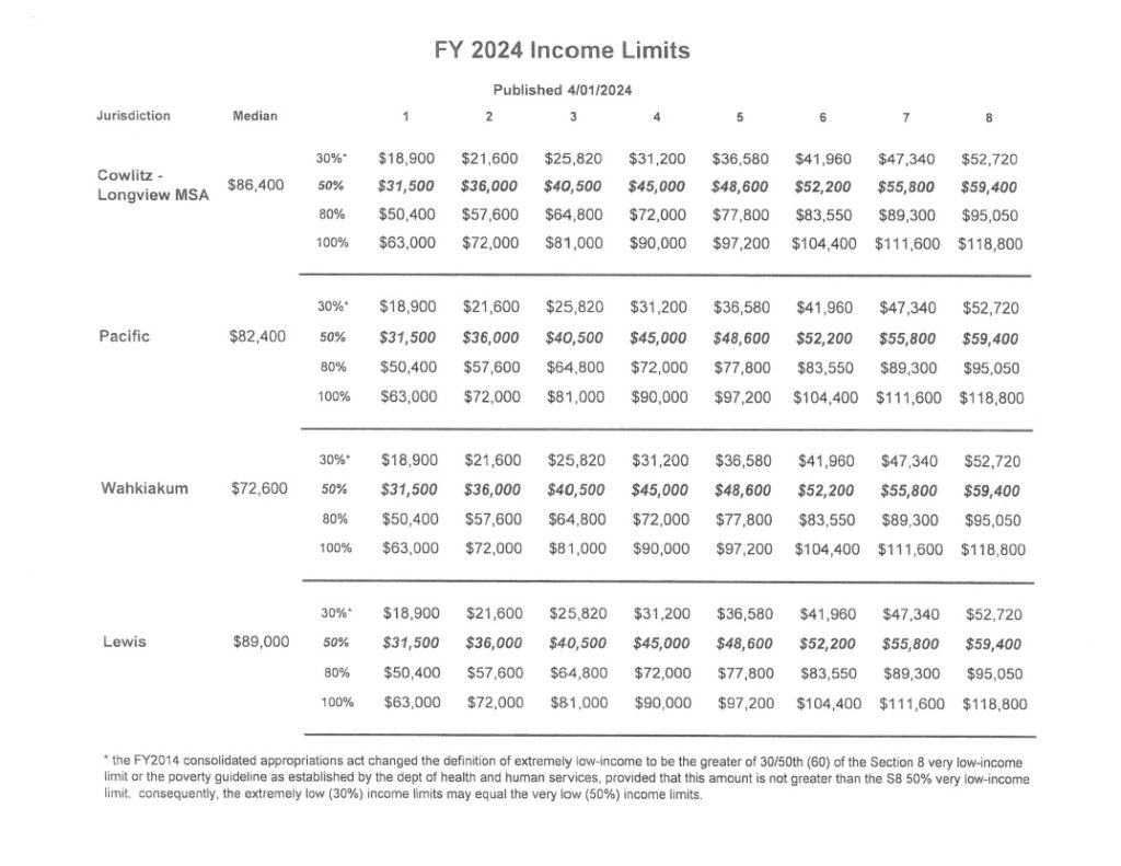 Click here for the HUD Income Limits. This will open a new window. Then click on the year you’re interested in, and then scroll to the bottom of the page to click on the state map.